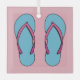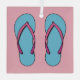 An illustration of a pair of pink and blue beach flip flops. It's summertime! Let's take a break and have some fun under the sun. Aren't you excited to prepare all your stuff for vacation? Don't forget your flip flops.