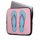 An illustration of a pair of pink and blue beach flip flops. It's summertime! Let's take a break and have some fun under the sun. Aren't you excited to prepare all your stuff for vacation? Don't forget your flip flops.