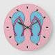 An illustration of a pair of pink and blue beach flip flops. It's summertime! Let's take a break and have some fun under the sun. Aren't you excited to prepare all your stuff for vacation? Don't forget your flip flops.