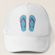 An illustration of a pair of pink and blue beach flip flops. It's summertime! Let's take a break and have some fun under the sun. Aren't you excited to prepare all your stuff for vacation? Don't forget your flip flops.