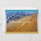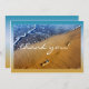 Waves from the ocean gently rolling onto the sandy beach and footsteps on the sand. Blank beach thank you card you can write on later, or you can customise the text.