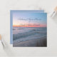 The Beach View wedding collection features a beautiful calm and romantic beach view scene. The front of the design features a beach view photo of calm and romantic waves gently rolling onto the sand and grass of the shore line at sunrise. The beautiful glow of the sunrise has cast an array of colours in the horizon and reflecting off the ocean waves. As you look into the rolling waves you can almost feel the ocean breeze and taste the salt in the air. The photo was taken at sunrise on Hilton Head Island, South Carolina. The backside of the invite is originally designed in a calming blue shade, but can be changed to any colour by using the "customise it" feature. Use the custom wording template to personalise your invites with your own wording. This design is wonderful addition to any outdoor or beach themed wedding.