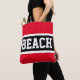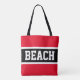 BEACH Fun Athletic Bright Red Black White Stripes Tote Bag