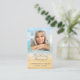Beach theme with your favourite photo in square frame. Script and modern typography is used. On the back of the card is the prayer that can be customised overlaying beach background.