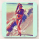 Bikini beach girl model standing at the water's edge wearing a ponytail to customise with your own greeting, name, message, etc