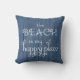 The message "the Beach is my happy place" is set on a background of old wood boards tinted cobalt blue to make this lovely and fun beach themed throw pillow. Matching items and other beach themed designs are available in my Zazzle store.