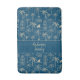 A pattern for your beach house. Surfboards, palm trees, waves. Everything you need for a good time. In beige on dark blue and with space for your name or one or two lines of text. Vacation feeling for your bath mat!