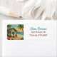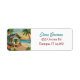 A pretty impasto beach themed return address label sticker with a cute beach house, palm trees and tropical flowers.