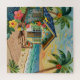 A pretty impasto beach themed puzzle with a cute beach house, palm trees and tropical flowers.