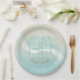 This paper plate in the soft colours of sea and sand allows you to easily add your own name and text using the provided template. The image of two Adirondack chairs on a distressed, watercolor background is highlighted by a wave accent in aqua and white. Search ID623 to see coordinating seaside elements and additional products with this design.