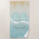 This beach towel design in the soft colours of sea and sand allows you to easily add your own name and text using the provided template. The simple Adirondack chairs image on a distressed, watercolor background is highlighted by a wave accent in aqua and white. Search ID623 to see coordinating seaside elements and additional products with this design.