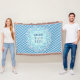 This pretty, personalised beach house throw blanket has a blue-and-white herringbone pattern. The bold shell motif has a classic Art Deco stylised look, complete with starfish and a faint white anchor in the middle. In a vintage 1920's font, easily add your family name. Even the words "Beach House" are customisable, in case you want to add "Lake House," "Summer Home" or any other words you would like.