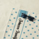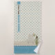 Personalised Beach House Beach Towel | A pretty beach scene on a polka dot beach towel is personalised with your family name. All text is editable so even "beach house" can be changed to something else if it better suits your needs. Pretty blue polka-dots on a creamy background. An Adirondack chair sits on a sandy beach by the water. A butterfly and a cluster of pussy willows add the finishing touch.