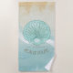 This beach towel design in the soft colours of sea and sand allows you to easily add your own name and text using the provided template. The simple clam shell image on a distressed, watercolor background is highlighted by a wave accent in aqua and white. Search ID623 to see coordinating seaside elements and additional products with this design.