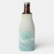 This bottle cooler in the soft colours of sea and sand allows you to easily add your own name and text using the provided template. The simple clam shell image on a distressed, watercolor background is highlighted by a wave accent in aqua and white. Search ID623 to see coordinating seaside elements and additional products with this design.