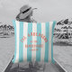 Beach House Custom Name Blue Cabana Stripe Cushion