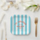 Beach House Custom Name Blue Cabana Stripe Paper Plate