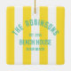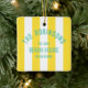 Beach House Custom Name Yellow Cabana Stripe Ceramic Ornament