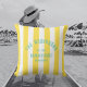 Beach House Custom Name Yellow Cabana Stripe Cushion