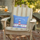 Nothing says "it's summer" like a light house with happy fish. This whimsical design features a red, white and blue light house over a red and white band. At the bottom of the light house there are six smiling fish. The customisable text reads, "OUR BEACH HOUSE" and "Established 20XX". On the back of the pillow there is a pattern made up of the light house. This design is available for indoor and outdoor (shown here in an outdoor fabric).