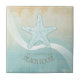 This ceramic tile design in the soft colours of sea and sand allows you to easily add your own name and text using the provided template. The simple starfish image on a distressed, watercolor background is highlighted by a wave accent in aqua and white. If you aren't fortunate enough to have a beach house or cottage, just change the text on this fun design to whatever suits your needs. Search ID623 to see coordinating seaside elements and additional products with this design.