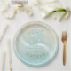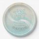 This paper plate in the soft colours of sea and sand allows you to easily add your own name and text using the provided template. A supplied white frame is optional. The simple palm trees image on a distressed, watercolor background is highlighted by a wave accent in aqua and white. Search ID623 to see coordinating seaside elements and additional products with this design.