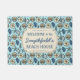 This pretty beach house doormat has a seashell pattern in shades of bright blue, aqua blue, beige and cream. In the central banner, the text reads, "Welcome to the [Your Family Name] Beach House." Use the easy template field to add your name. "Beach House" has also been turned into a template, in case you want to change it to "Summer Home," "Lake House" or any other words you like.