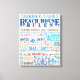 Decorate your beach house with this custom, whimsical canvas sign. Full of funny sayings in shades of blue, aqua green, coral, red and sandy brown, this bright wall art will make your family and your guests laugh. The background has a light faux (printed) wooden texture.