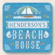 These beachy drink coasters are perfect for resting your cold beverage on a hot summer day. The unique, personalised design is made to resemble blue wood grain with white text and elegant flourishes in shades of brown and golden yellow. At the top, the design includes a sailboat on the waves, seagulls flying past. Nautilus shells surround the "Beach House" text, which is made to look slightly worn.