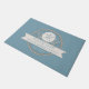 Welcome your friends with this beach themed mat that features a design in aqua, ivory and soft tan greys. A rope circle surrounds a sand dollar, sea grass and a banner where you can place your own text or leave it with the words as shown that read: "Please wipe your sandy feet". Below the banner is text that you can customise with the year your home was established. If you want to change the background colour from aqua to your own favourite colour, simply choose a new colour from within the design tool!