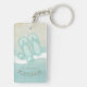 This acrylic keychain in the soft colours of sea and sand allows you to easily add your own name and text using the provided template. The simple sunglasses and flip flops image on a distressed, watercolor background is highlighted by a wave accent in aqua and white. Search ID623 to see coordinating seaside elements and additional products with this design.