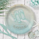 This paper plate in the soft colours of sea and sand allows you to easily add your own name and text using the provided template. The simple sunglasses and flip flops image on a distressed, watercolor background is highlighted by a wave accent in aqua and white. Search ID623 to see coordinating seaside elements and additional products with this design.
