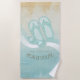 This beach towel design in the soft colours of sea and sand allows you to easily add your own name and text using the provided template. The simple sunglasses and flip flops image on a distressed, watercolor background is highlighted by a wave accent in aqua and white. If you aren't fortunate enough to have a beach house or cottage, just change the text on this fun design to whatever suits your needs. Search ID623 to see coordinating seaside elements and additional products with this design.
