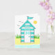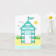 Beach Hut, painted light blue and white , standing in the sand dunes on the beach in the summer sun.