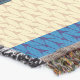 A quality printed throw has its advantages. This is a much finer weave throw than its loopier cousins, and though lighter, it is worth the investment for custom room accessorizing. The back is much prettier than the typical brown, and the fringe on the long sides very vivid, the selvage nicely done. Before photographing, I washed the throw in cold water, delicate, with a thicker woven throw the same size. On tumble dry low, this throw was dry in half the time as the other. This is a very practical quality if you use throws for furniture covers or to wrap up in frequently. The sleekness of the fabric makes it a great layer for accenting or protecting without the feeling of sitting on too much stuff. Perfect for napping or when you feel a light chill coming on. The color printing is beautiful and on this fabric, matched the design and color of my Photoshop image. This is an advantage for blending room fabrics and colors. The fringe on the short sides prints the colors from the design image and therefore varies from the side fringe. I streaked a white fractal line through the plaid pattern to give the illusion of weaving. This printed as crisp as an illusory thread, and put some white in the short side fringe, showing another advantage of print vs loomed- for artistic purposes, line lines, detail, and color integrity can be planned and preserved. My loomed throws have color limitations and more of a needlepoint texture. Print throws reproduce an exact image. The throw felt a little stiff straight out of the package, but this went away in the first delicate wash. Of course I searched the wash water for ink or bleeding and there was none.