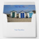 This bright and colourful photo on this envelope was taken on a sunny day but chilly day at Southwold in the South East of England. I like this photograph because it's a summer scene from a typical English seaside coastal town. These unique beach huts look amazing against the vibrant blue of the summer sky. Beach huts are a much sought after and prized coastal hideaway to many British seaside visitors. The owners of these huts usually paint them in seaside colours such as "sea blue," and "sand yellow" so that they stand proudly along the promenade. The title of this photo is-: "Seaside Beach huts" and I think it makes a bright and cheery photo note card. It's a great and original send to anyone who loves the seaside and the tranquillity of summer. This is a customisable envelope for you to add your own text.