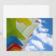 Photograph of bright coloured Beach Huts in Red, Green, Orange, Blue and Yellow against a beautiful blue sky with passing white clouds on the North East Coast Of England