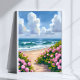 Beach in Bloom | Pink Hydrangea Oceanside Coastal Art Poster