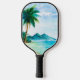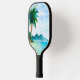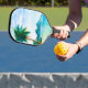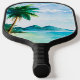 Beautiful watercolor scene of ocean beach, tropical palm tree and blue sky's. Stylish and chic for any pickleball player who loves a tropical paradise scene.