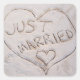 Candid "Just Married" wedding announcement envelope seal featuring the words "just married" written in the sand. Perfect for those who enjoyed tropical destination weddings or elopements and want to let loved ones know they got hitched!