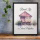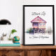 A beach house with tropical plants and water reflection watercolor style, with the quote, "Beach life is shore perfection." Ai art. generativecontent