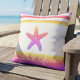 “Beach life”. Whenever you relax on this seaside throw pillow, you can be rest assured the summer seashore fun will continue. A graphic, rainbow yellow, orange, pink, and purple ombre vintage starfish overlays a crisp, white background with sandy textured rainbow stripes. Both indoor and outdoor fabric choices available. Great for the family beach house, your nautical lifestyle, or just to bring a bit of the beach into your home all year round!
