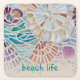 These coasters are decorated with a beach themed mosaic and the words Beach Life.