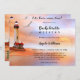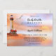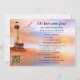 Beach lighthouse bachelorette weekend itinerary template featuring an original painting of a lighthouse on the beach at sunset with seagulls. With QR code template. Beautiful for a coastal weekend getaway.