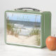 Beach themed lunchbox with photo of the seashore with waves, sand dunes and sea grass. Customise it with the name or text of your choice.
