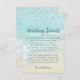 This coastal themed wedding details card features a background scene of ocean waves crashing against the beach, with string lights at the top. For matching products, visit the collection, or message me through Zazzle Chat.
