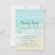 These coastal themed wedding RSVP cards feature a background photo of aqua blue ocean waves crashing against the beach, with string lights decorating the top of the card. For matching products, visit the collection, or message me through Zazzle Chat.