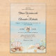 Perfect for tropical destination weddings or any summer beach and coastal themed wedding, these elegant invitations feature a blue watercolor ocean background, with seashells on the beach at the bottom. Find matching products in the collection.