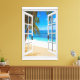 Blue seas Trompe L'oeil Picture with fake window beach view. Photo optical illusion special effect, with open window and beautiful tropical sea view.