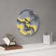 Chic multi-tonal abstract yellow and grey ocean waves patterned clock, with a monogram area for you to add your name and initial